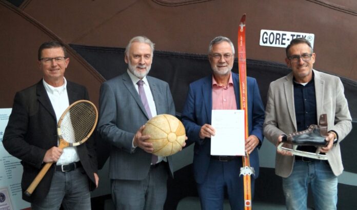 Symbolisch überreichte heute (Dienstag, 15.10., 14:00 Uhr) in Hauenstein Kulturstaatssekretär Prof. Dr. Jürgen Hardeck vom Ministerium für Familie, Frauen, Kultur und Integration des Landes Rheinland-Pfalz die Fördermittel an den Präsidenten des Sportbundes Pfalz Rudolf Storck sowie Geschäftsführer Asmus Kaufmann. Ziel ist es, die Erweiterungs- und Umbauarbeiten, die sich über die gesamte obere Geschoßfläche des Deutschen Schuhmuseums Hauenstein mit etwa 570 Quadratmetern erstrecken, im Jahr 2025 abzuschließen.