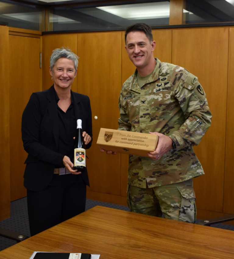 Im Rathaus der Stadt Kaiserslautern war am Dienstagvormittag der neue Kommandeur der United States Army Garrison Rheinland-Pfalz, Oberst Jeffery C. Higgins, zu seinem Antrittsbesuch zu Gast. Dort traf er sich mit Oberbürgermeisterin Beate Kimmel zu einem Kennenlern-Gespräch. Die United States Army Garrison Rheinland-Pfalz hat ihren Hauptsitz in den Rhine Ordnance Barracks, wo Col. Higgins im Juli das Kommando übernahm. Als Kommandeur ist er Vorgesetzter von 1.600 Mitarbeiterinnen und Mitarbeitern, die an 29 Standorten in Deutschland Dienstleistungen und Unterstützung für eine militärische und zivile Bevölkerung von mehr als 42.000 Menschen erbringen, darunter die Militärgemeinde Baumholder, die Coleman Work Site, das Landstuhl Regional Medical Center, das Miesau Ammo Depot und das Germersheim Army Depot. Der in Jacksonville, Florida, geborene Higgins schloss 2002 sein Studium an der Militärakademie der Vereinigten Staaten ab und wurde als Infanterieoffizier befördert.