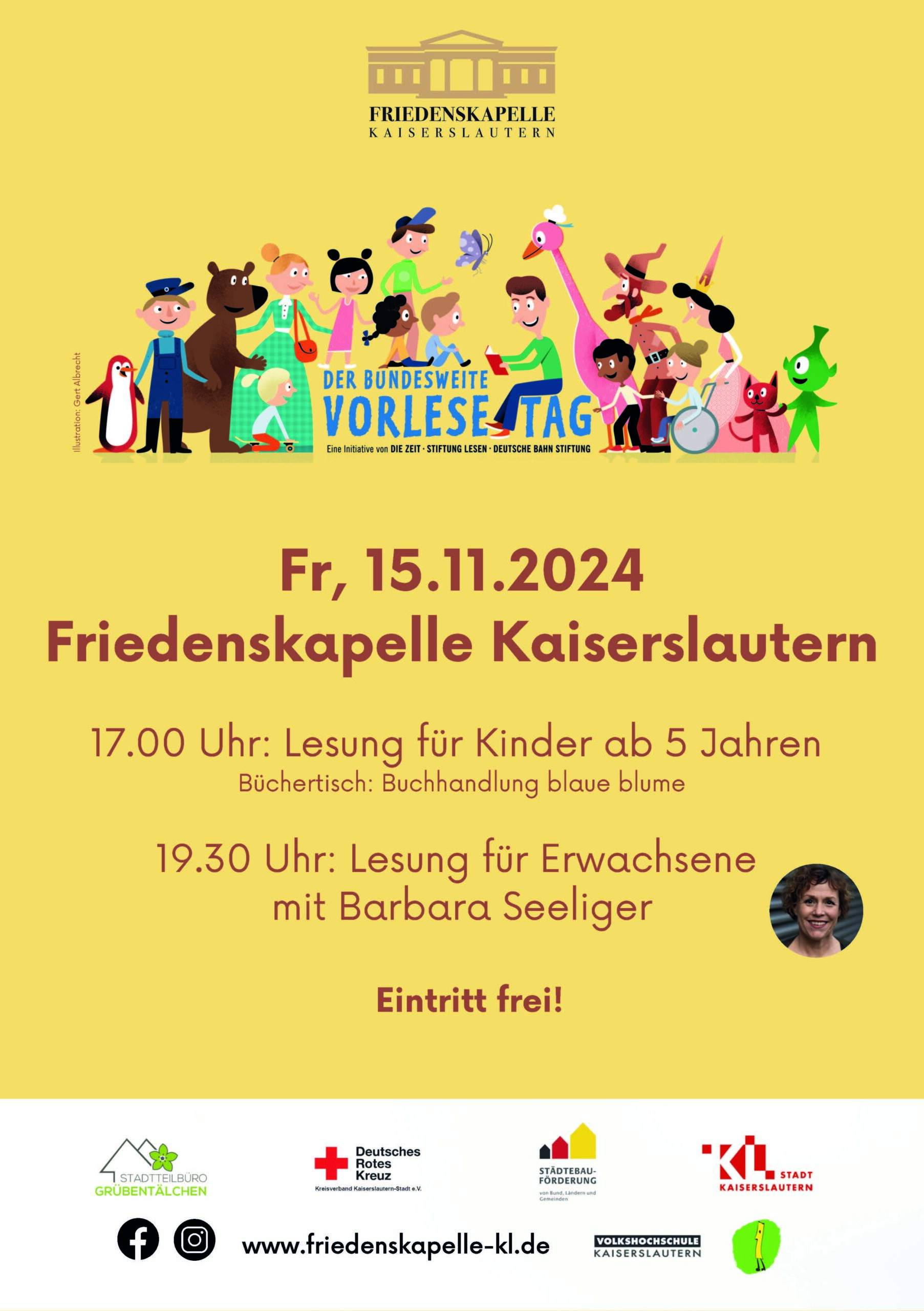 Die Volkshochschule (VHS) Kaiserslautern lädt gemeinsam mit dem Stadtteilbüro Grübentälchen herzlich zum diesjährigen bundesweiten Vorlesetag am 15. November in die Friedenskapelle ein. Unter dem Motto „Abenteuer und Fantasie“ erwartet die Besucherinnen und Besucher ein vielfältiges Programm, das Kinder und Erwachsene gleichermaßen begeistert.