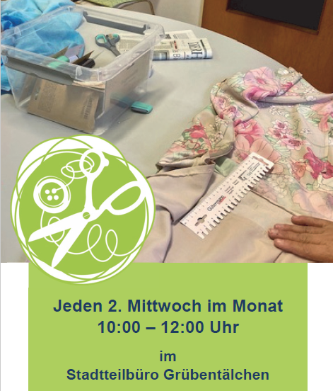 Am Mittwoch, den 13. November, von 10:00 – 12:00 Uhr bietet das Stadtteilbüro Grübentälchen wieder die Möglichkeit, kleinere Änderungen an Kleidungsstücken wie Hose/Rock kürzen, Reißverschlüsse einsetzen oder andere kleinere Näharbeiten unter kundiger Anleitung selbst oder von einer ehrenamtlich Mitarbeitenden vornehmen zu lassen.