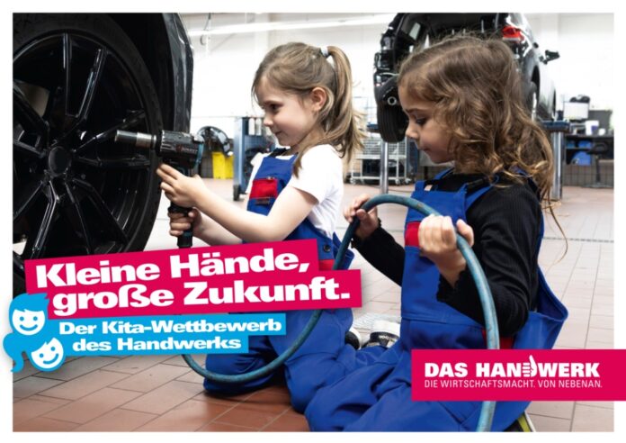 Der beliebte Kita-Wettbewerb „Kleine Hände, große Zukunft“ geht in die zwölfte Runde: Ab sofort können die Kinder wieder zusammen die Welt des Handwerks entdecken. Die Kleinen zwischen 3 und 6 Jahren dürfen nicht nur echten Handwerker*innen über die Schultern schauen und ein wenig zur Hand gehen. Nach dem Besuch stellen die Kinder selbst ein Riesenposter her und haben die Chance auf einen tollen Gewinn.