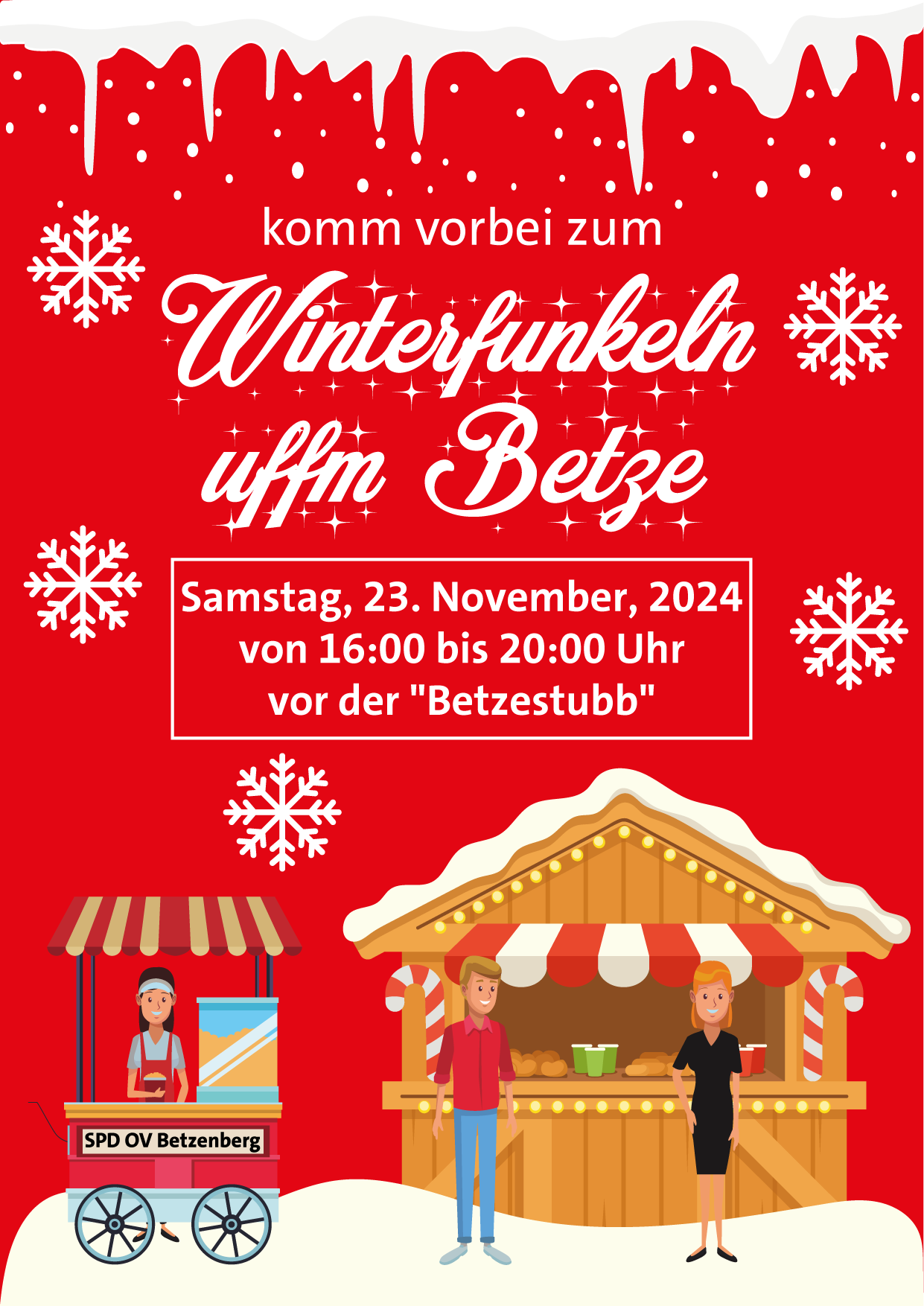 Der Betzenberg erstrahlt im Glanz der Vorweihnachtszeit: Am Samstag, den 23. November 2024, lädt der SPD-Ortsverein Betzenberg zum „Winterfunkeln uffm Betze“ ein. Dieser besondere Abend verwandelt das Areal vor der „Betzestubb“ (Rousseaustrasse 14) in ein zauberhaftes Winterwunderland. Von 16:00 bis 20:00 Uhr erwartet die Besucher ein Fest für alle Sinne, das die Magie der Vorweihnachtszeit aufleben lässt.
