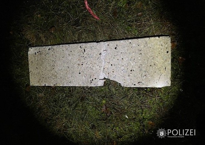 Eine Treppenstufe aus Stein sorgte am späten Montagabend auf der L401 in Richtung Mehlingen dafür, dass mehrere Fahrzeuge beschädigt wurden. Derzeit geht die Polizei davon aus, dass der Gegenstand gegen 17:30 Uhr, beim Transport zu der nahegelegenen Mülldeponie verloren wurde. In der Dunkelheit überfuhren vier Verkehrsteilnehmer das Treppenstück. Hierbei entstand leichter Sachschaden an den Autos. Die Beamten ermitteln jetzt wegen des Verdachts der Verkehrsunfallflucht und suchen nach dem Verantwortlichen. Zeugen, die Hinweise zu dem Verursacher geben können, werden gebeten, sich unter der Telefonnummer 0631 369-2150 beim Altstadtrevier zu melden. |kfa