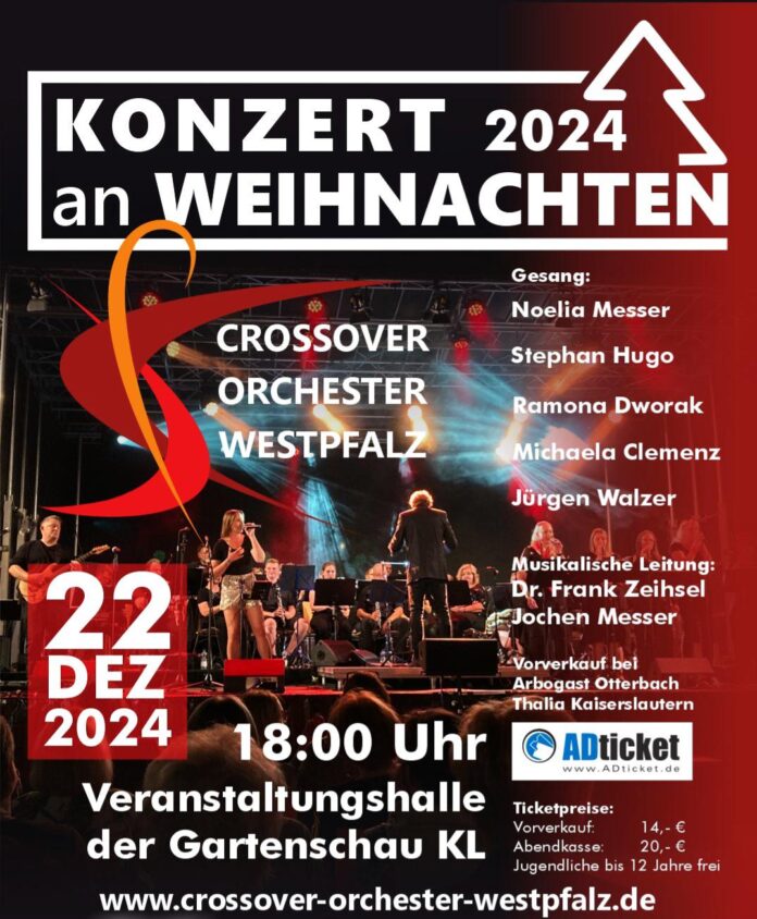 Der Musikverein Otterbach e.V. (MVO) veranstaltet wieder das traditionelle „Konzert an Weihnachten“. Am 22. Dezember 2024 verwandelt das „Crossover Orchester Westpfalz“, ein Ensemble des Musikvereins Otterbach e.V., die Veranstaltungshalle der Gartenschau in Kaiserslautern ab 18 Uhr in einen großen Konzertsaal. Unter der musikalischen Leitung von Dr. Frank Zeihsel und Jochen Messer hat das Crossover Orchester Westpfalz wieder ein vielseitiges Programm mit allerlei musikalischen Highlights zusammengestellt. Auch in diesem Jahr darf das Crossover Orchester Westpfalz beim Konzert wieder musikalische Gäste begrüßen. Am Gesang wird das Orchester von Ramona Dworak, eine der schönsten Stimmen Kaiserslauterns, bekannt von „Jam Planet“ und „Girls on Fire“ sowie von dem Lautrer Sänger Stephan Hugo, bekannt durch „Winterland“ und viele weitere Formationen, aber vor allem auch durch seinen charismatisch-markanten Gesang bei Produktionen des Pfalztheaters und auf verschiedenen CD-Produktionen unterstützt. An der Gitarre und am Gesang konnte erneut Jürgen Walzer, bekannt durch „Superior“ und seine eigene Rockoper „Dispyria“ gewonnen werden. Hinzu kommen aus den eigenen Reihen des Orchesters mit einzigartigen und mitreißenden Stimmen Michaela Clemenz, ausgebildete Sopranistin, und Noelia Messer, die, wenn sie nicht gerade singt, das Orchester mit Ihrem Können an der Percussion unterstützt. Abgerundet wird der Abend durch den „Crossover Chor“, dem eigenen Background Chor des Crossover Orchesters Westpfalz mit Sänger*innen aus der ganzen Region.