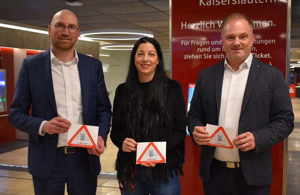 Es gibt in Kaiserslautern keinen Grund, im Freien zu übernachten – gerade jetzt in der ungemütlichen Jahreszeit. Die Glockestubb in der Pariser Straße und das Caritasheim St. Christopherus bieten im Notfall immer ein Dach über dem Kopf. Um Obdachlosen den Weg zu weisen und über die Unterkunftsmöglichkeiten zu informieren, hat die Caritas einen Aufkleber herausgegeben, der in mehreren Sprachen und mit einem QR-Code auf die einschlägigen Angebote im Stadtgebiet hinweist. Dieser klebt unter anderem bereits an den Eingängen des Rathauses und wird ab sofort auch an den Eingängen einiger Filialen der Sparkasse zu sehen sein, die immer wieder zur Anlaufstelle obdachloser Menschen im Winter werden. Die Sozialdezernentin der Stadt, Anja Pfeiffer, die den Aufkleber unterstützt, war am Donnerstag persönlich vor Ort, um der Sparkasse zehn der Aufkleber zu übergeben.