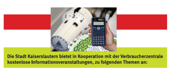 Die Stadt Kaiserslautern bietet in Kooperation mit der Verbraucherzentrale kostenlose Informationsveranstaltungen zu folgenden Themen an: