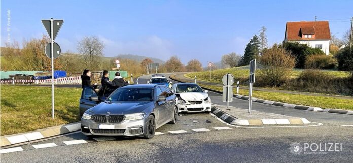 Wie der 35-jährige Fahrer des vorderen BMW bei der Unfallaufnahme angab, war er aus Richtung Mehlbach zu dem Kreisel gekommen und musste dort verkehrsbedingt anhalten. Der nachfolgende Fahrer erkannte die Situation offenbar zu spät und krachte auf das Heck des haltenden Pkw.