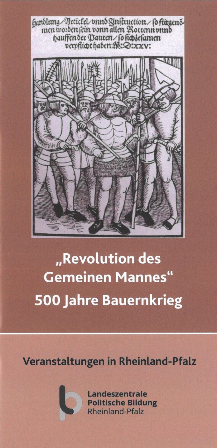 Die Landeszentrale für politische Bildung Rheinland-Pfalz (LpB) hat, wie in den beiden vergangenen Jahren zur Revolution von 1848/49, auch für das Jubiläum „500 Jahre Bauernkrieg“ Veranstaltungen in Rheinland-Pfalz gesammelt, unterstützt und initiiert, um den demokratiegeschichtlichen Teil politischer Bildung zu verdeutlichen. Dabei wird erneut sichtbar, wie vielfältig und breit aufgestellt Rheinland-Pfalz als Demokratieland ist und sein kann.