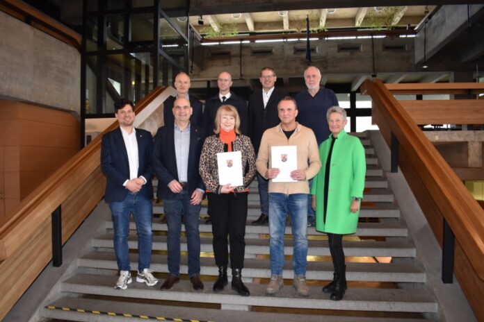 Oberbürgermeisterin Beate Kimmel hat am vor wenigen Tagen zwei langjährigen Mitarbeitern der Stadtverwaltung, Iris Salten und Christian Fath, anlässlich ihres vierzigjährigen Dienstjubiläums jeweils eine Anerkennungsurkunde des Landes Rheinland-Pfalz und der Stadt Kaiserslautern überreicht. Das Stadtoberhaupt bedankte sich für die lange Verbundenheit zur Stadt und die geleistete Arbeit. Ebenfalls ihre besten Wünsche zum Jubiläum überbrachten die jeweiligen Dezernenten Manuel Steinbrenner und Manfred Schulz, die Referatsleitungen Thomas Höhne und Raphael Mader sowie Peter Schmitt vom Personalrat und Personalreferatsleiter Wolfgang Mayer. Christian Fath ist aktuell bei der Straßenverkehrsbehörde tätig, Iris Salten im Referat Feuerwehr und Katastrophenschutz.