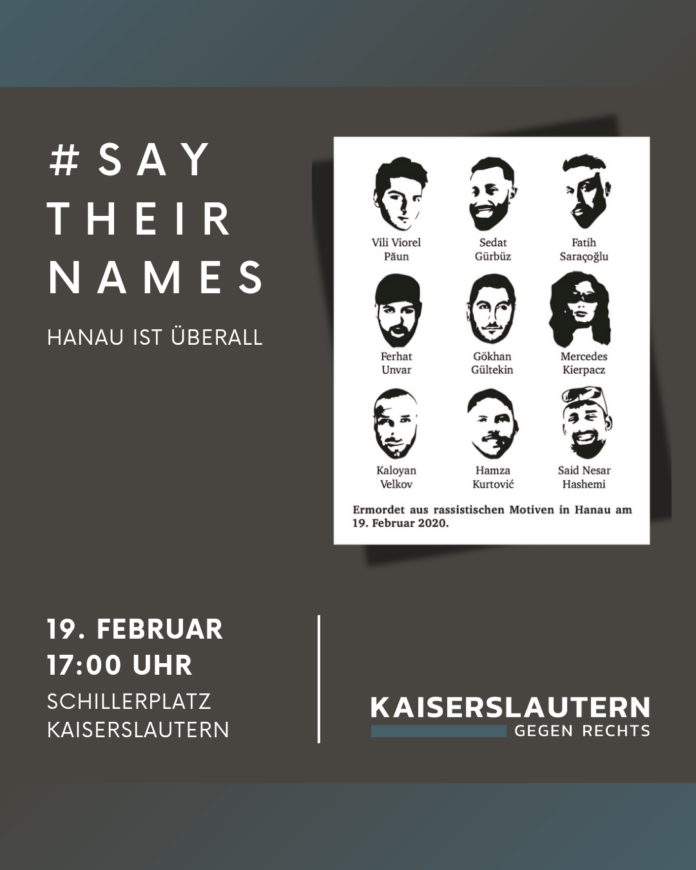 Am 19. Februar 2025, um 17:00 Uhr, findet auf dem Schillerplatz in Kaiserslautern ein stilles Gedenken an die Opfer des rassistisch motivierten Anschlags in Hanau statt.