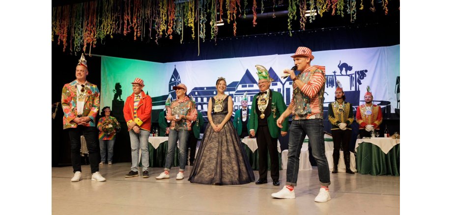 Durch die Sitzung leitete Jürgen Lesmeister vom KV Bruchkatze. Unzählige Akteure, Garden und Büttenredner sorgen für eine ausgelassene Stimmung bei den 400 Gästen in der Halle.