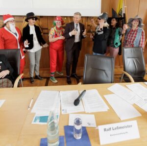 Mitten in der Einbürgerungsfeier stürmten einige verkleidete Frauen der Kreisverwaltung Kaiserslautern den großen Sitzungssaal, gingen dem Landrat Ralf Leßmeister an den Kragen, schnitten seine Krawatte ab und tanzten unter dem Beifall der Neubürger.