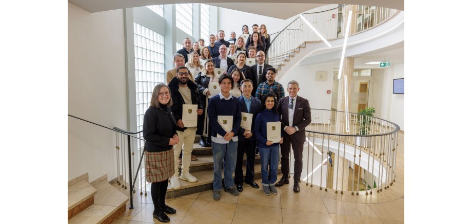 Eine weitere Überraschung war der Besuch zweier Wandergesellen, die auf ihrer Reise zu neuen Wirkungsstätten einen Zwischenhalt in der Kreisverwaltung machten – gelebtes Brauchtum, das der Landrat mit einem großzügigen Geschenk bedachte.