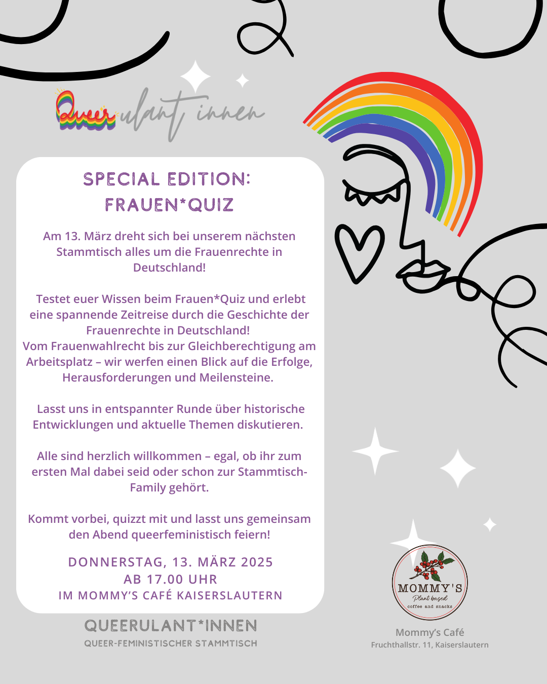 Kommt vorbei, quizzt mit und lasst uns gemeinsam den Abend queerfeministisch feiern!