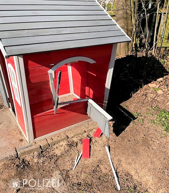 Den bisherigen Ermittlungen zufolge wurden mehrere Spielhäuschen, ein hölzerner Torbogen, ein Zaun und ein Vogelhäuschen mutwillig beschädigt. Der Gesamtschaden wird auf rund 1.000 Euro geschätzt. Die Tatzeit liegt zwischen Freitagnachmittag, 16 Uhr, und Montagmorgen, 7.30 Uhr.