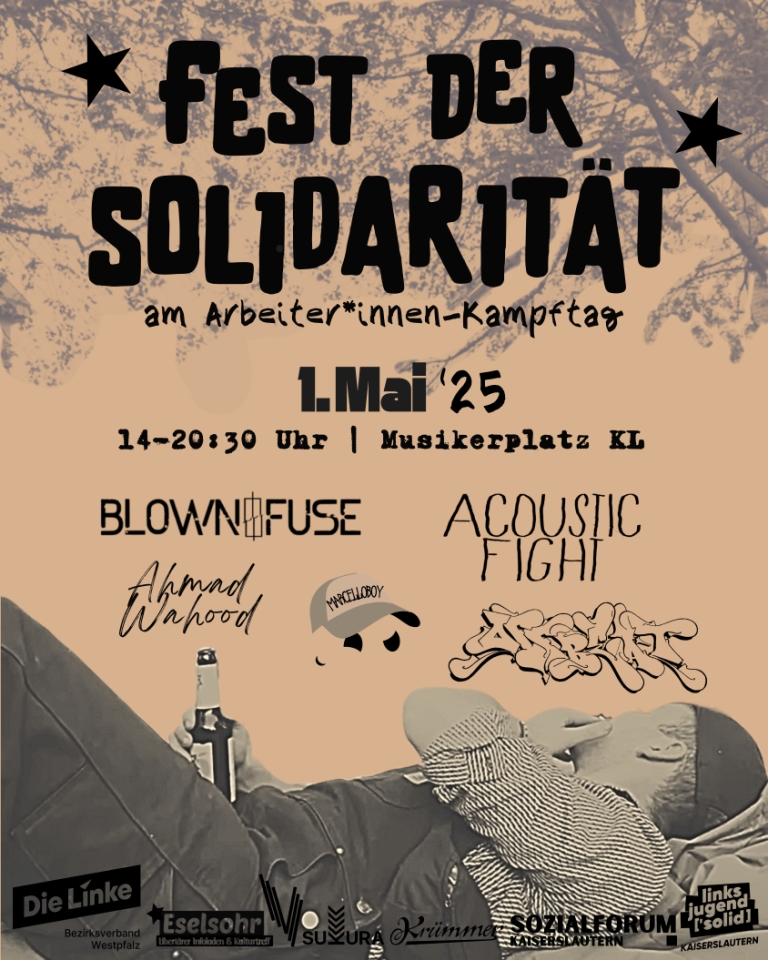 Die Linke Kaiserslautern lädt gemeinsam mit Kulturvereinen und verschiedenen linken Gruppen und Organisationen zu einem Kulturfest auf dem Musikerplatz an der Pirmasenserstraße in Kaiserslautern ein.