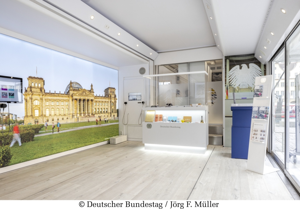 Das Infomobil bietet Bürgerinnen und Bürgern Gelegenheit, mit ihren örtlichen Bundestagsabgeordneten in Kontakt zu treten und sich aus erster Hand über Aufgaben und Arbeitsweise des Parlaments zu informieren.
