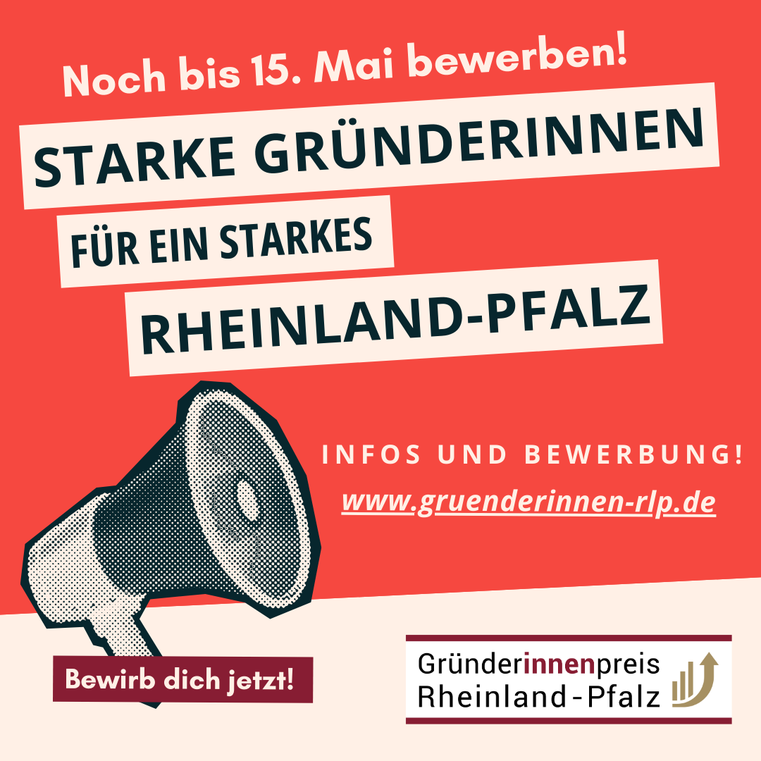 Der Gründerinnenpreis Rheinland-Pfalz ehrt Frauen, die den Mut zur Selbstständigkeit zeigen und Wirtschaft und Gesellschaft nachhaltig prägen. In drei Kategorien werden herausragende Gründerinnen und Unternehmerinnen ausgezeichnet: Neugründerinnen, Jungunternehmerinnen sowie Frauen, die durch eine Betriebsübernahme erfolgreich Verantwortung übernommen haben. Der Preis würdigt Innovationskraft, Durchhaltevermögen und die einzigartige Vision jeder Preisträgerin. (Auszug aus der Website zum Gründerinnenpreis)