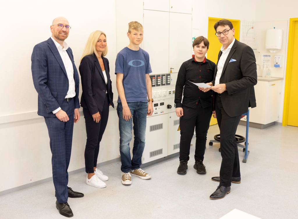 Lennox Ledesma und Joshua Renner, beide Schüler am Heinrich-Heine-Gymnasium in Kaiserslautern, haben für die Umsetzung ihrer Experimente im Rahmen von „Jugend forscht“ vom Sparkassenverband Rheinland-Pfalz eine finanzielle Unterstützung erhalten.