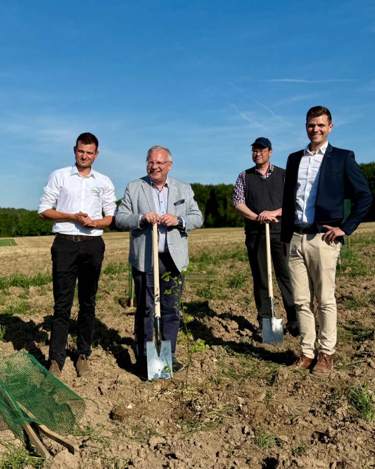 Mit dabei bei der Abschlusspflanzung waren auch Dr. Klaus Weichel, erster stellvertretender Bezirkstagsvorsitzender, Verbandsgemeindebürgermeister Rudolf Jacob und Harald Westrich, kaufmännischer Direktor der LUFA Speyer, Jan Jungkind, Vertreter aus den Landesforsten Rheinland-Pfalz und der Forschungsanstalt für Waldökologie und Forstwirtschaft, der DLR und des Landkreises Donnersbergkreis sowie Dr. Christian Koch und Johannes Steinfort vom Hofgut Neumühle.