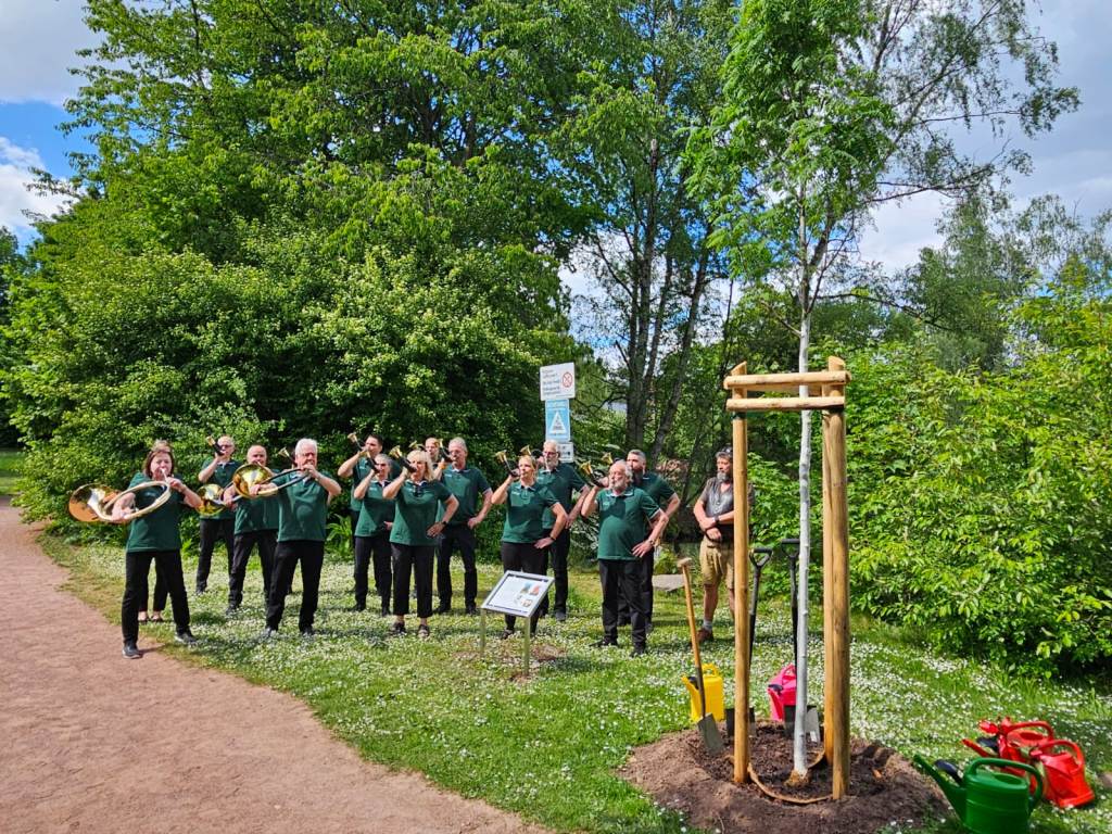 Man wolle mit der Pflanzung ein Zeichen setzen als Erinnerung an den Landeswettbewerb und sich damit für die städtische Unterstützung bei der Ausrichtung des Wettbewerbs im Volkspark bedanken, so Günther Degen von den Aschbachthaler Jagdhornbläsern, die auch den Wettbewerb ausgerichtet haben. Die Oberbürgermeisterin gab den Dank gerne zurück: „Der Baum ist ein Zeichen der Verbundenheit und eine besondere Zierde für den Volkspark. Die Pflanzung ist ein Ausdruck dafür, dass Sie Interesse daran haben, etwas für die Stadt und ihre Menschen zu tun. Danke für den Baum und ein Herzliches Dankeschön für die Ehre, dass Sie den Landesbläserwettbewerb nach Kaiserslautern geholt haben und dieser hier ausgetragen wird.“