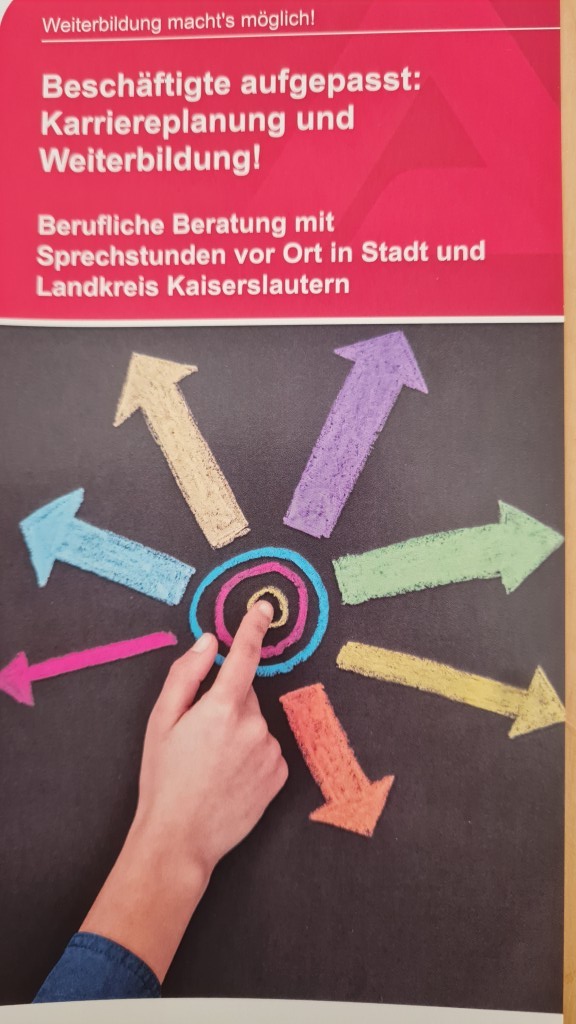Wen die Themen: Beruflich aufsteigen, Beruflich wieder einsteigen, Kenntnisse erweitern, Qualifikation nachholen, Beruf wechseln oder Förderung von Weiterbildung interessieren kann ohne Termin zwischen 16 und 18 Uhr unverbindlich vorbei kommen. Das Angebot richtet sich an Beschäftigte, Erziehende und/oder Betreuende.