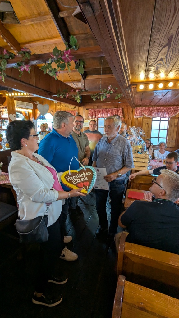 Die „Marktbeschicker“ Familien Becker – mehrere Generationen stark – danken ihm nicht nur für sein Wirken im Ausschuss, sondern auch für die Werte, die er über all die Jahre verkörpert hat: Gemeinschaftssinn, Beständigkeit und Verantwortung. Als kleine Anerkennung wurde ihm ein Präsentkorb überreicht.