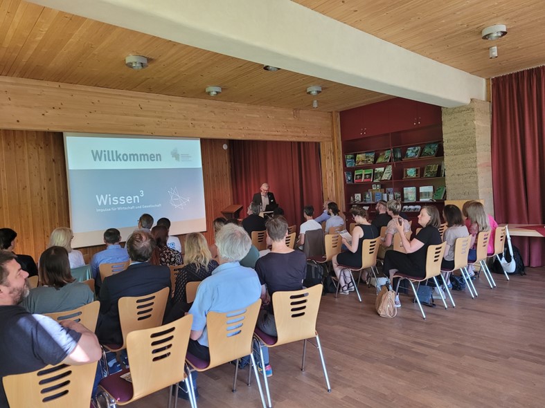 Zahlreiche Teilnehmende fanden sich im idyllisch gelegenen Veranstaltungsort ein und folgten nach einer Begrüßung durch Simone Kiefer, der Leiterin des Hauses der Nachhaltigkeit, der offiziellen Eröffnung durch Prof. Priv.-Doz. Dr.-Ing. habil. Peter Starke, Vizepräsident Forschung & Transfer der HSKL, und Prof. Dr. Dieter Wallach, der als Moderator durch den Nachmittag führte.