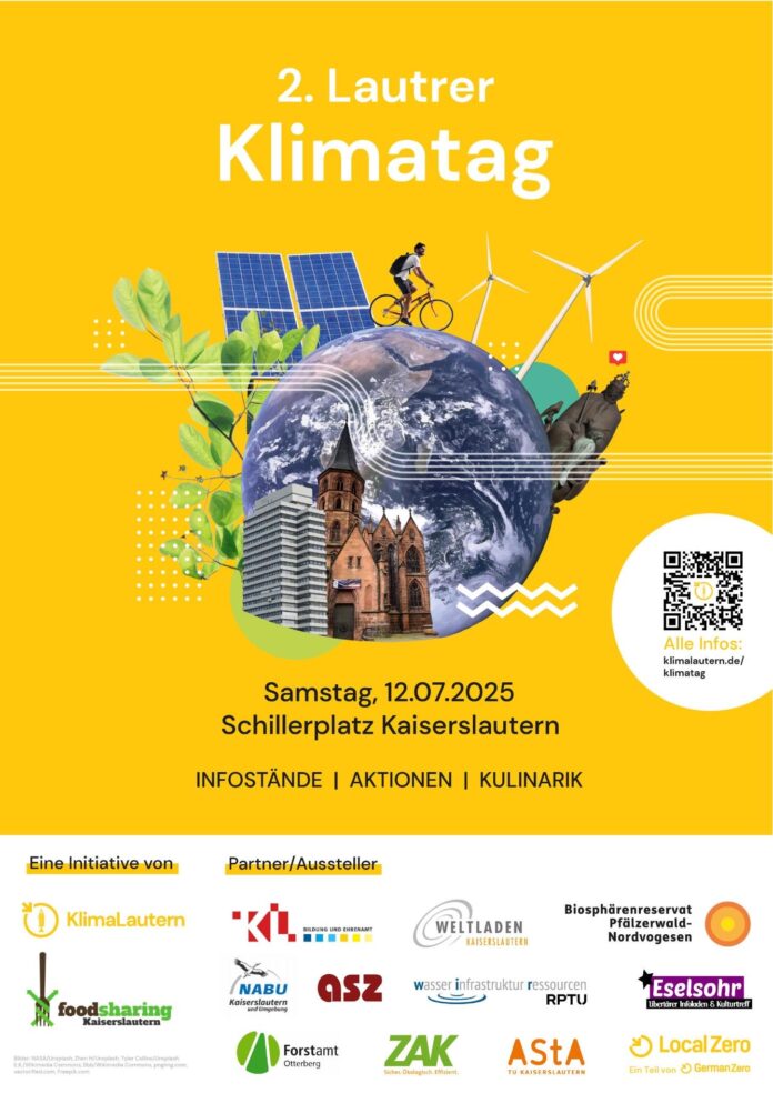Am Samstag, den 12.7.2025, findet von 10-16 Uhr der 2. Lautrer Klimatag auf dem Schillerplatz statt. Der Verein Klimalautern e.V. veranstaltet diesen Tag gemeinsam mit anderen Vereinen, Verbänden und Institutionen.