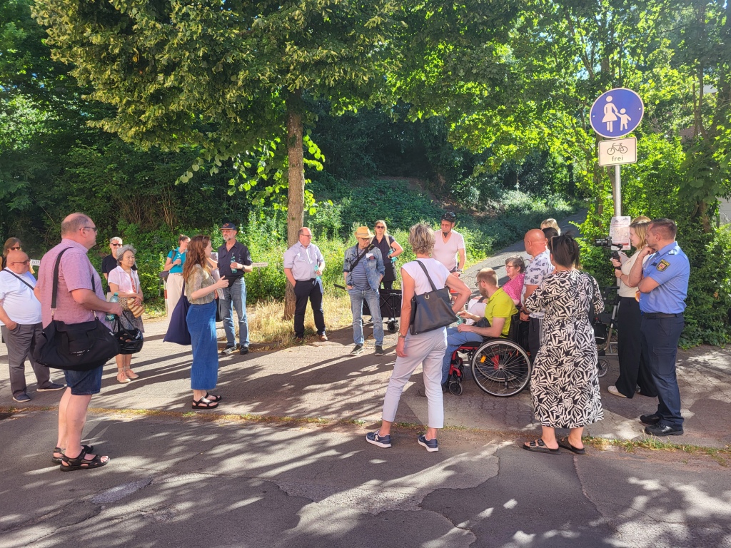 BU: Im Rahmen von zwei Begehungen bei bestem Sommerwetter brachten sich Bürgerinnen und Bürger in die Begutachtung des Fußverkehrs vor Ort ein.