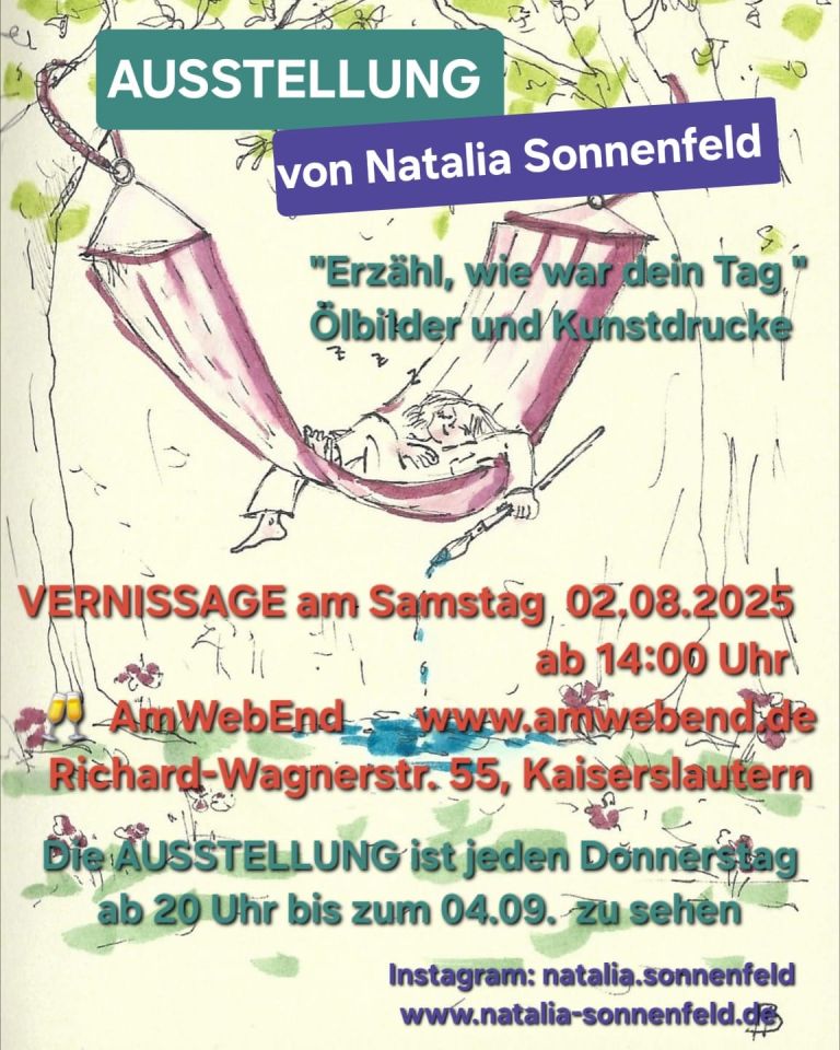 Natalia Sonnenfeld arbeitet als freie Künstlerin und hatte mehrere Ausstellungen, unter anderem in Bochum, Stuttgart, Koblenz und Kaiserslautern.
