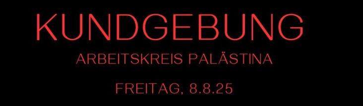 Deutschland macht sich somit mitschuldig am Völkermord an den Palästinenser*innen. Wir – der Arbeitskreis Palästina – wollen nicht weiter wegschauen und rufen daher zusammen mit Friedens Initiativen aus der Region zu einer Kundgebung am Freitag den 8. August 2025 von 17 – 19 Uhr auf dem Platz vor der Stiftskirche in der Marktstraße Kaiserslautern auf.