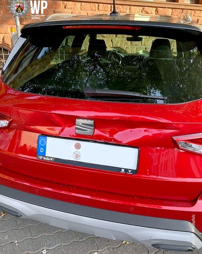 Mit einer großen Delle im Heckbereich hat ein Autobesitzer am Donnerstag in der Perlenbergstraße seinen Pkw vorgefunden. Der rote Seat Arona war in Höhe des Hauses Nummer 32 auf einem Parkplatz längs zur Fahrbahn abgestellt. Zwischen Mittwochabend, 18 Uhr, und Donnerstagmorgen, 8 Uhr, stieß offenbar ein anderer Verkehrsteilnehmer gegen das Fahrzeug und hinterließ den Schaden am Heck.