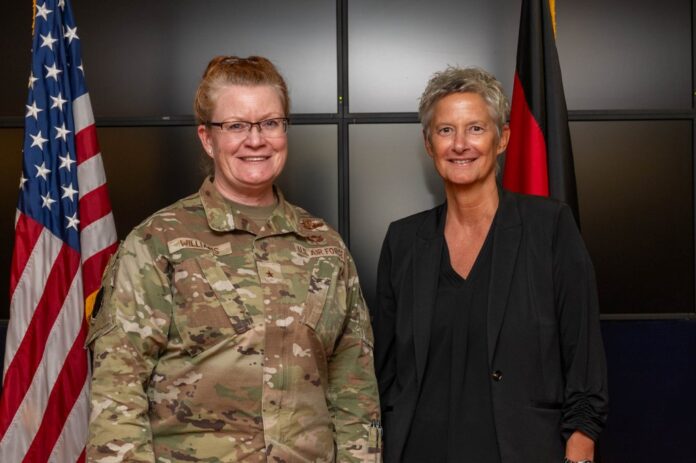 Brigadegeneralin Adrienne L. Williams, Kommandeurin des 86. Lufttransportgeschwaders, empfing Oberbürgermeisterin Beate Kimmel in Ramstein, um ihr Einblicke in den amerikanischen Stützpunkt zu geben. Die Militärgemeinschaft Kaiserslautern ist die größte amerikanische Militärgemeinschaft außerhalb der USA, die aus Teilen der Armee und der Luftwaffe besteht.