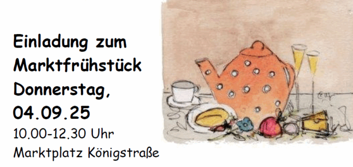 Das ASZ und die Bau AG laden am 4. September 2025 zu Sekt und Kaffee beim Marktfrühstück auf den schönen Donnerstagsmarkt an der Königstraße ein. An den Marktständen kann etwas Süßes oder Deftiges erworben werden. Zwischen 10 und 12.30 Uhr stellt das Wohn- und Pflegeheim Kessler Handorn seine neue Tagesstätte vor und Anuschka Molter vom Pflegestützpunkt Süd-Ost, sowie die Gemeindeschwester plus, Isolde Weisenstein stehen für Fragen zur Verfügung. Neu auf dem Markt ist der Foodtruck Lorito von Anna & Attila. Sie bieten ein veganes Mittagessen zu erschwinglichem Preis an. Alle Bürgerinnen und Bürger sind herzlich eingeladen die Marktatmosphäre zu genießen und ins Gespräch zu kommen.