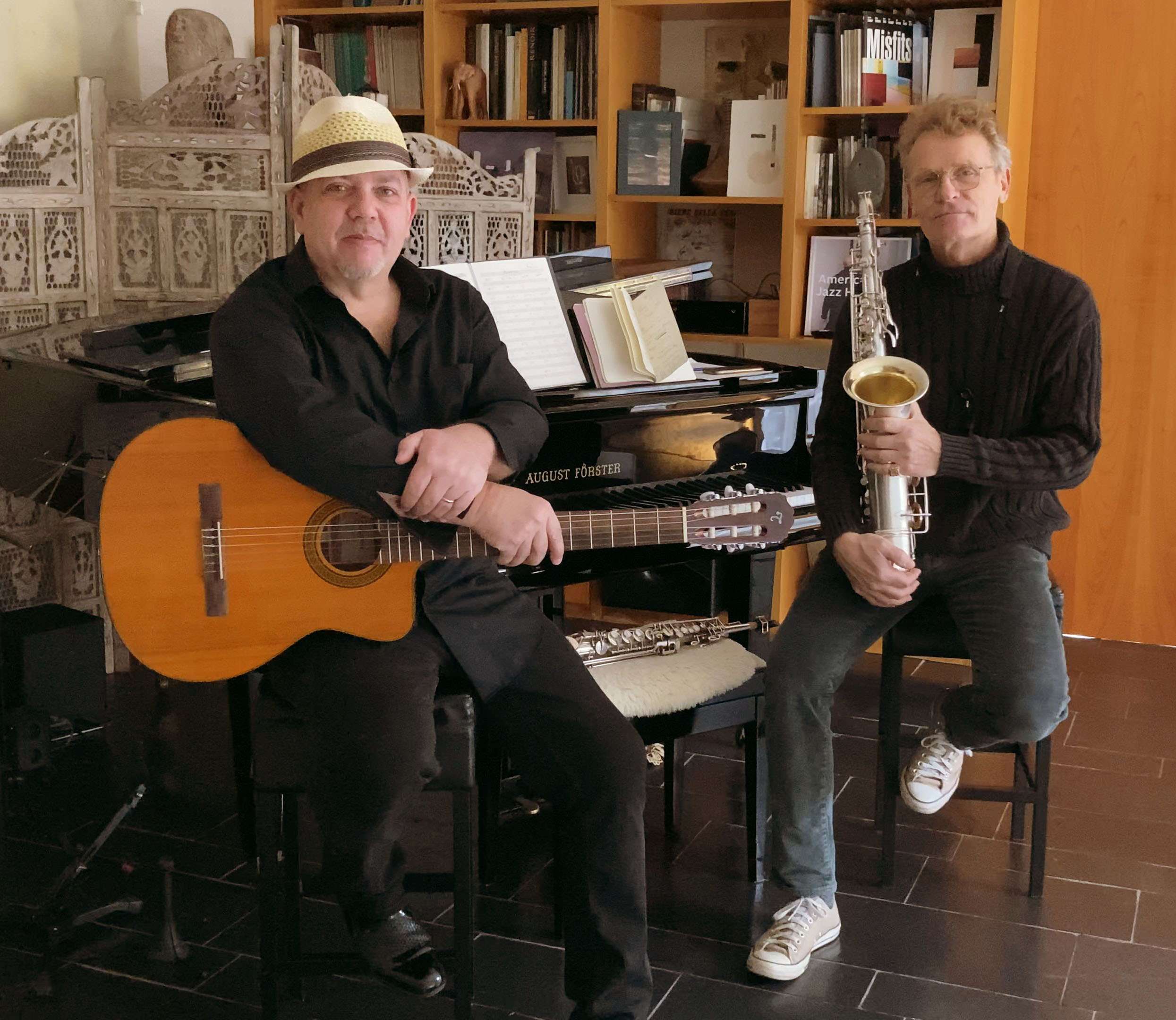 „Ein Fresser und ein Säufer….“ – ein charmantes Urteil mancher Zeitgenossen über Jesus. Texte voller Lebensfreude verbinden sich mit Bossa Nova,Plädoyers wider alle Lebensfeindlichkeit. Am berühmten Strand Copacabana in Rio wurde dieser neue Musikstil in den 1950er Jahren geboren. Musiker wie Antônio Carlos Jobim und Vinícius de Moraes prägten ihn, Charlie Byrd und Stan Getz ließen sich inspirieren. „Girl from Ipanema“ ist bis heute einer der größten Hits. In der Militärdiktatur ab 1964 verließen viele Musiker Brasilien und emigrierten in die USA. Es entstanden viele Produktionen des Bossa Nova Jazz, bis hin zu Sänger:innen wie Ella Fitzgerald und Frank Sinatra. Stefano Cattaneo ist ein in Kaiserslautern und Italien lebender, international renommierter Kunstmaler aus Italien, der auch Saxophon studiert hat. Sein Partner Carlos Abyazar ist ebenfalls studierter Musiker, auch wohnhaft in Kaiserslautern und kommt aus Brasilien. Ihre Musik wird mit Textlesungen kombiniert.