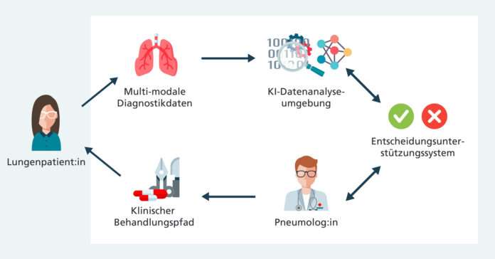 Zu diesem Zweck sammelt »AI4Lungs« mehr als 2500 reale Patientenakten, die von unseren klinischen Partnern sicher zur Verfügung gestellt werden. Mit diesen Daten werden KI-Modelle trainiert. Eine Plattform mit einem KI-gestützten Digital-Twin-System simuliert verschiedene Patientenszenarien und bereitet auf der Grundlage der realen Daten maßgeschneiderte Behandlungsvorschläge.