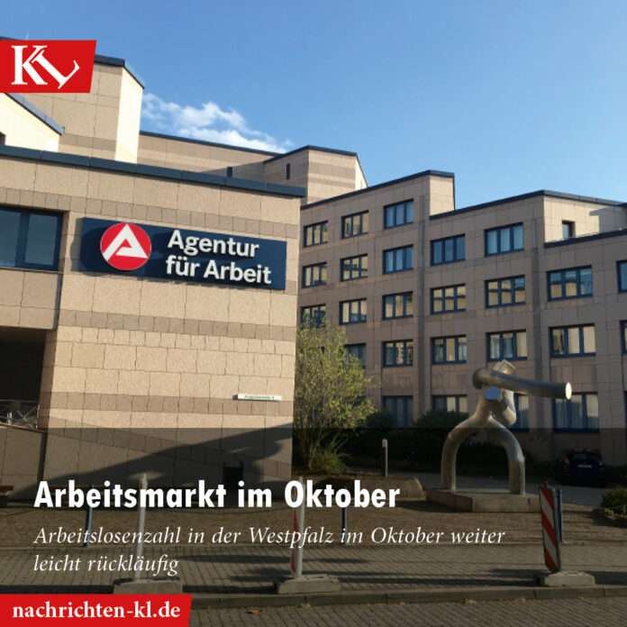 Die Arbeitslosigkeit ist im Bezirk der Agentur für Arbeit Kaiserslautern-Pirmasens (Stadt Kaiserslautern, Stadt Pirmasens, Stadt Zweibrücken, Landkreis Donnersbergkreis, Landkreis Kaiserslautern, Landkreis Kusel, Landkreis Südwestpfalz) im Oktober 2025 gesunken. 18.707 Menschen waren arbeitslos gemeldet, 82 Personen weniger (-0,4 Prozent) als im September, aber 296 Personen bzw. 2 Prozent mehr als vor einem Jahr. Die Arbeitslosenquote betrug 6,6 Prozent und lag mit 0,1 Prozentpunkten unter dem Vormonatsniveau. Vor einem Jahr lag sie bei 6,5 Prozent.