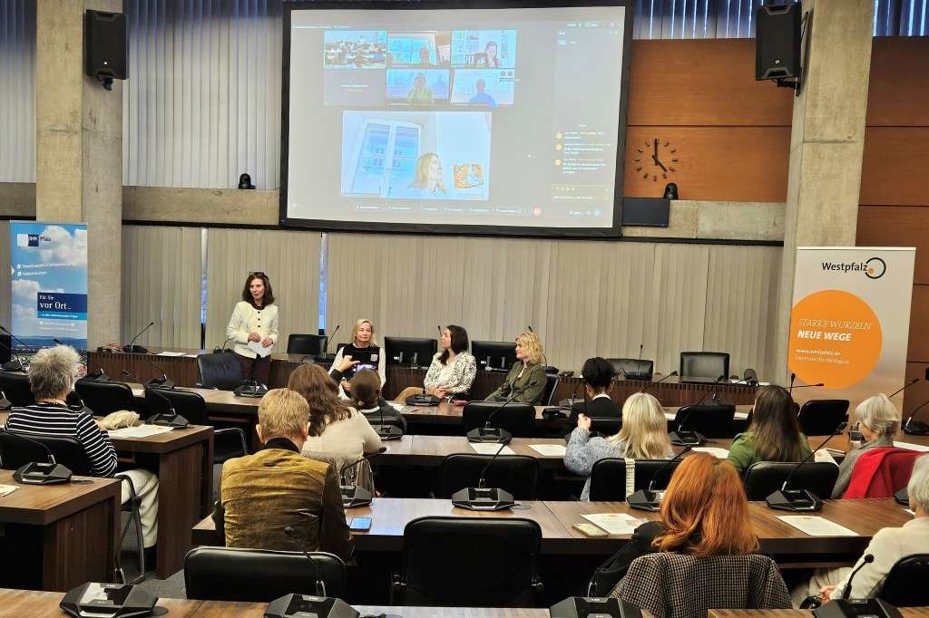 Am Donnerstag, 30. Oktober 2025, fand im Großen Ratssaal des Kaiserslauterer Rathauses ein Austausch der besonderen Art statt. Drei Frauen aus Kaiserslautern vor Ort und drei Frauen aus Brandenburg an der Havel via Videokonferenz gaben einen Einblick in ihre Werdegänge und Herausforderungen als Frauen in Führungspositionen. Die ZukunftsRegion Westpfalz e.V. (ZRW) und die Industrie- und Handelskammer Pfalz (IHK) hatten gemeinsam mit der Stadt Kaiserslautern die FührungsFrauen Westpfalz zu dieser hybriden Veranstaltung eingeladen. Die Anregung dazu war vom städtischen Bildungsbüro gekommen.