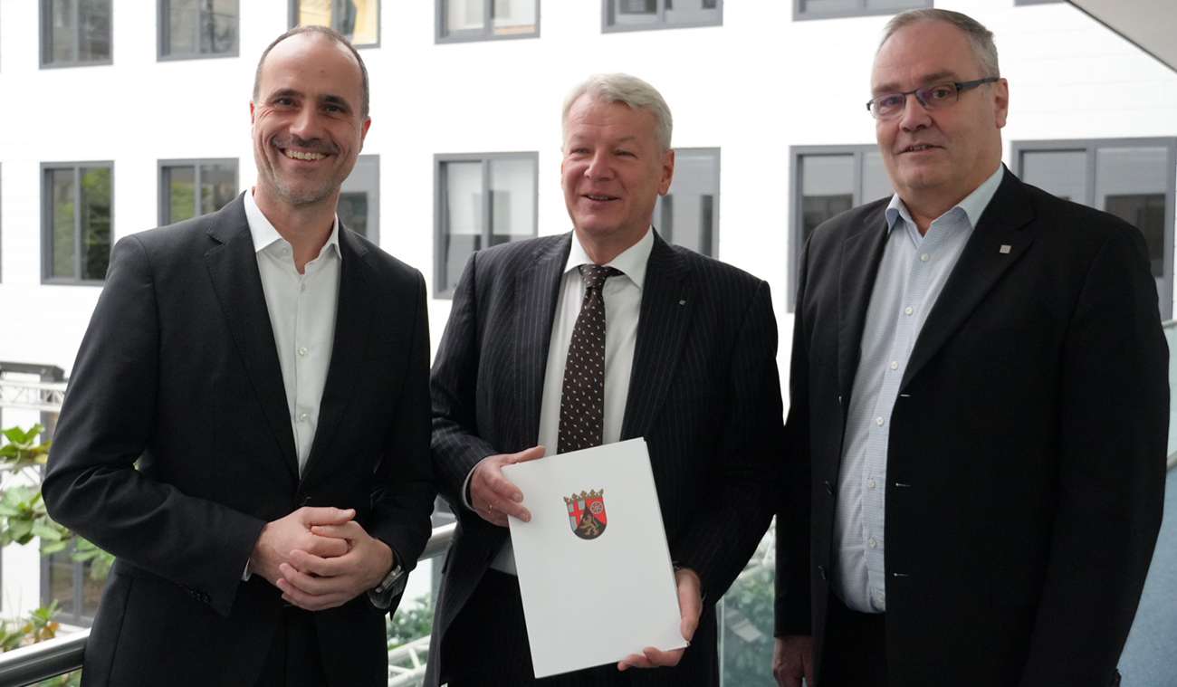 Am heutigen Freitag, den 7. November 2025, besuchte der rheinland-pfälzische Wissenschaftsminister Clemens Hoch das Fraunhofer-Institut für Experimentelles Software Engineering IESE in Kaiserslautern, um den Förderbescheid zum Projekt VIMOPROP an Institutsleiter Prof. Peter Liggesmeyer zu überreichen. Im Projekt soll ein Konzept zur virtuellen Zertifizierung einer sicheren und regelkonformen Produktion von ATMPs aufgebaut werden, denn bei der Digitalisierung des Herstellungsprozesses hochindividueller Arzneimittel müssen neben den Herausforderungen an die rein technische Umsetzung noch strenge regulatorische Anforderungen mitgedacht und berücksichtig werden.