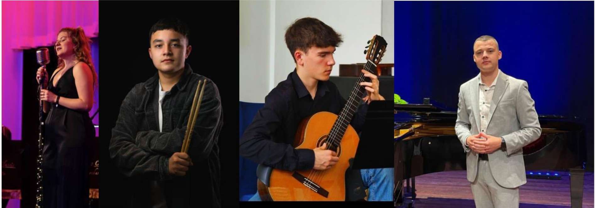 mit Blues und Pop zu überzeugen weiß. Vierter im Bund der Solisten ist der Schlagzeuger Daniel Würtz, ebenfalls Bundespreisträger Jugend musiziert, der, aus Otterbach kommend, trotz seines jungen Alters schon ein Studium aufgenommen hat und im Begriff ist, mit den Kaskaden seines Spiels, die Welt zu erobern.