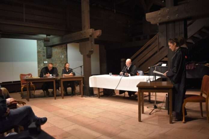 Am Mittwoch, 12. November 2025, hatte das Bildungsbüro der Stadt Kaiserslautern in der Scheune des Stadtmuseums zu „Hänsel und Gretel vor Gericht“ eingeladen. Mehrere Schulklassen – an die 90 Schülerinnen und Schüler mit ihren Lehrkräften – nahmen an der Veranstaltung teil, die Scheune war bis auf den letzten Stuhl besetzt. Das Publikum bekam ein juristisches Improvisationstheaterstück geboten, das einen Einblick in den Ablauf einer Gerichtsverhandlung und in das Strafrecht gab.