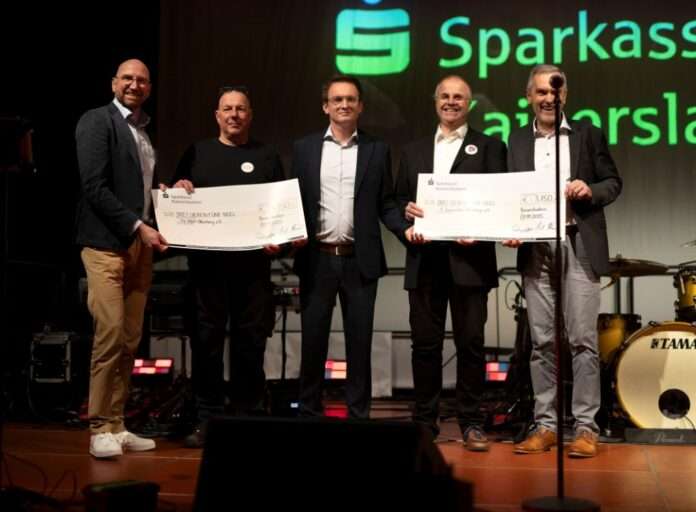 „Auch diese Nacht der Legenden wird ein toller Abend“, versprach in bester Laune Hartmut Rohden, stellvertretender Vorstandsvorsitzender der Sparkasse Kaiserslautern. Im gut aufgelegten Publikum habe er einige Stammbesucher der PS-Show und auch neue Gesichter entdeckt. Nach der „Riesenstimmung beim ABBA-Abend letztes Jahr, freue ich mich mit Ihnen auf einen vergnüglichen Abend und beste Unterhaltung“, sagte Rohden ans Publikum gewandt. Den gastfreundlichen Vereinen 1. Tennisclub Otterberg und Turnverein 1861 Otterberg konnte er zusammen mit Jürgen Müller, Leiter der Sparkassenfilialdirektion Otterberg, 2 Spendenschecks über jeweils 3.750 Euro überreichen. Zusammen mit den Abendeinnahmen kam so ein erkleckliches Sümmchen zusammen, wofür sich die Vereinsvertreter Joachim Profit (TCO) und Rainer Wirtz (TVO) bedankten. Das Geld soll für die Sportstätten und Sanierungsvorhaben eingesetzt werden, so die Vereine. Müller nutzte die Gelegenheit und warb für das PS-Sparen. „Sparen, Lotterie und Unterstützung für einen guten Zweck – also eine Win-Win-Situation für alle“, umschrieb er das PS-Sparen. Im Geschäftsgebiet würden so jedes Jahr über sechs Millionen Euro auf den Kundenkonten als Sparleistung gutgeschrieben und bis zu knapp einer Million Euro im Jahr als Gewinne ausgeschüttet. Durch Spenden investiere die Sparkasse Kaiserslautern in die Region in Institutionen, Einrichtungen, Vereine vor Ort, so Müller. „Regionale Nähe ist und bleibt für uns sehr wichtig“, ergänzte Rohden. Stadtbürgermeister Jan Hock wünschte einen genussvollen Abend, den es zu „rocken“ gelte.
