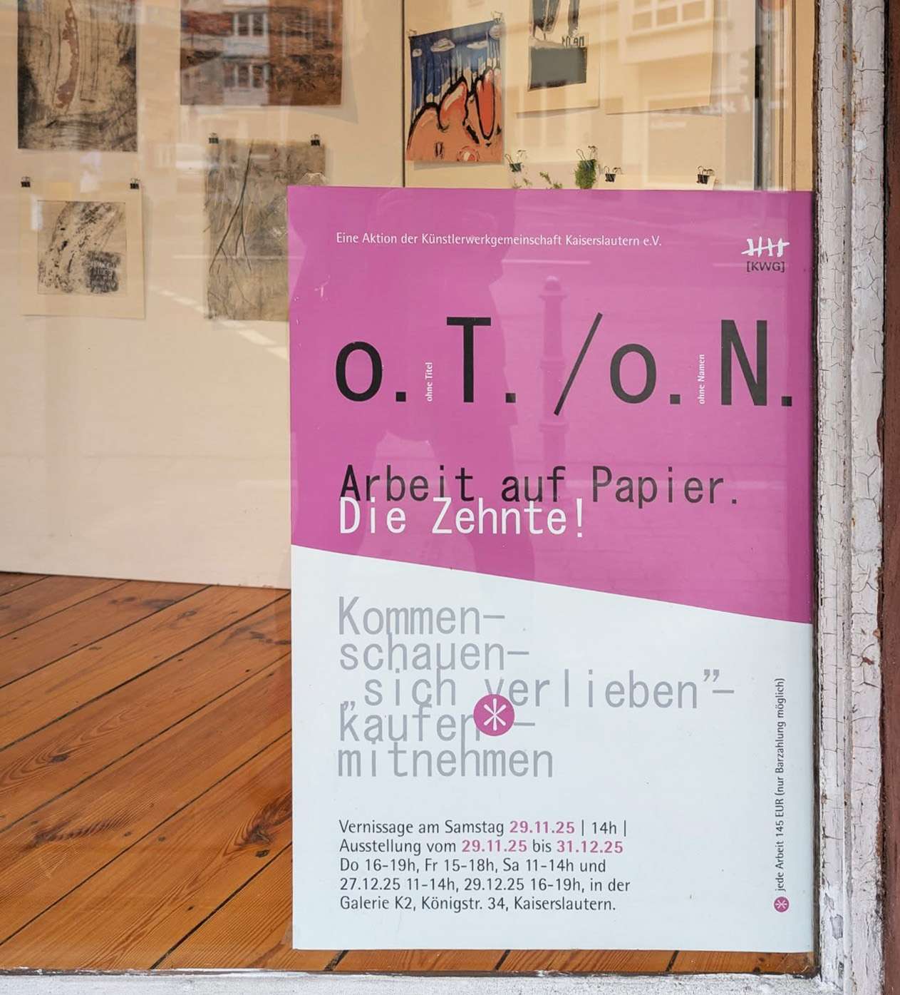 Unser beliebtes Ausstellungs-Format „o.T./o.N.“ ist in der Galerie K2, Königstrasse 34, Kaiserslautern erfolgreich angelaufen.