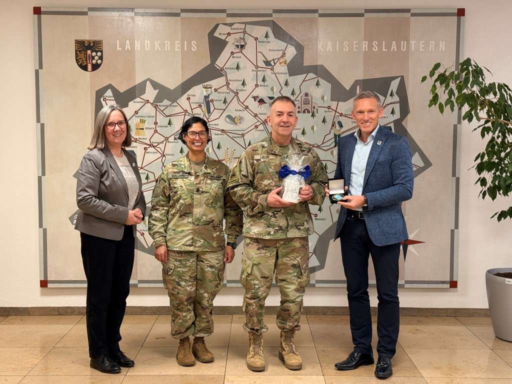 Landrat Ralf Leßmeister und die Erste Kreisbeigeordnete Gudrun Heß-Schmidt begrüßten Generalmajor Lalor herzlich. Begleitet wurde er von Kommandosergeant Denice Malave, die seit dem 5. Dezember 2024 als ranghöchste Unteroffizierin des 21st Theater Sustainment Command tätig ist und der Referentin für Öffentlichkeitsarbeit, Frau Ina Franzreb .