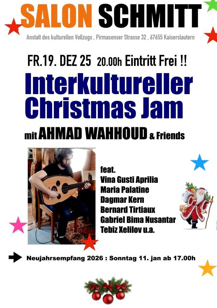 Am 19. Dezember gestaltet Ahmad Wahhoud aus Syrien – Gesang, Gitarre und Oud – eine interkulturelle Christmas Session, zu der zahlreiche musikalische Gäste zugesagt haben. Einige davon kennt man bereits aus dem Umfeld der Band Shaian. Wir freuen uns außerdem auf besonderen Besuch aus Belgien: