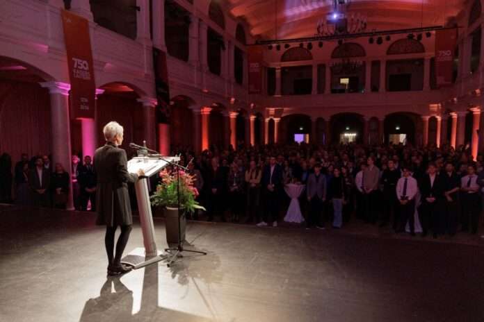 Mit einem klaren Blick nach vorn hat Oberbürgermeisterin Beate Kimmel beim Neujahrsempfang der Stadt Kaiserslautern das Jubiläumsjahr 2026 eingeläutet. In der ganz im Jubiläumsdesign geschmückten Fruchthalle, die 2025 als bedeutender rheinland-pfälzischer Demokratieort ausgezeichnet wurde, kamen rund 700 Gäste aus Politik, Gesellschaft, Kultur, Wirtschaft und Ehrenamt zusammen.