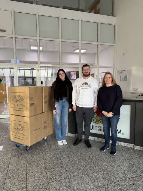 Die Auszubildenden von Fruit of the Loom organisierten eigenständig einen Musterverkauf für die Belegschaft. Dabei kam eine Spendensumme von 2.039,00 € zusammen. Der gesamte Erlös wurde an das Caritas-Förderzentrum St. Christophorus, eine Obdachloseneinrichtung in Kaiserslautern, gespendet. Zusätzlich zur Geldspende wurde die Einrichtung mit warmer Kleidung für den Winter ausgestattet. Das Förderzentrum ist auf Spenden angewiesen, um Menschen in Not mit warmen Mahlzeiten, Hygieneartikeln und anderen lebensnotwendigen Dingen zu versorgen.
