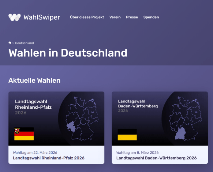 Der WahlSwiper für Rheinland-Pfalz und Baden-Württemberg ist ab sofort kostenfrei online verfügbar unter https://www.voteswiper.org/de/deutschland.
