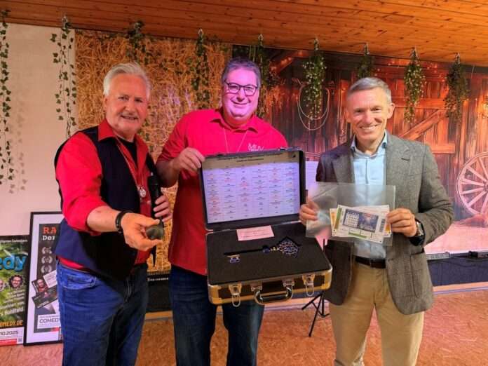 Schon bei der Schlüsselübergabe am 7. Februar hatte der Landrat augenzwinkernd darum gebeten, der Verein möge in seiner Amtszeit auch gleich die Finanzlage des Landkreises aufpolieren. Bei der Rückgabe fand sich im Koffer daneben zwar kein Gold, dafür aber zwei unausgefüllte Lotto- und ein Bingoschein – vielleicht als kleiner Hoffnungsschimmer für die Haushaltsplanung. Kämmerer Thomas Lauer, der ebenfalls anwesend war, kündigte scherzhaft an, nun prüfen zu müssen, ob die Kreisverwaltung überhaupt legal am Glücksspiel teilnehmen darf.